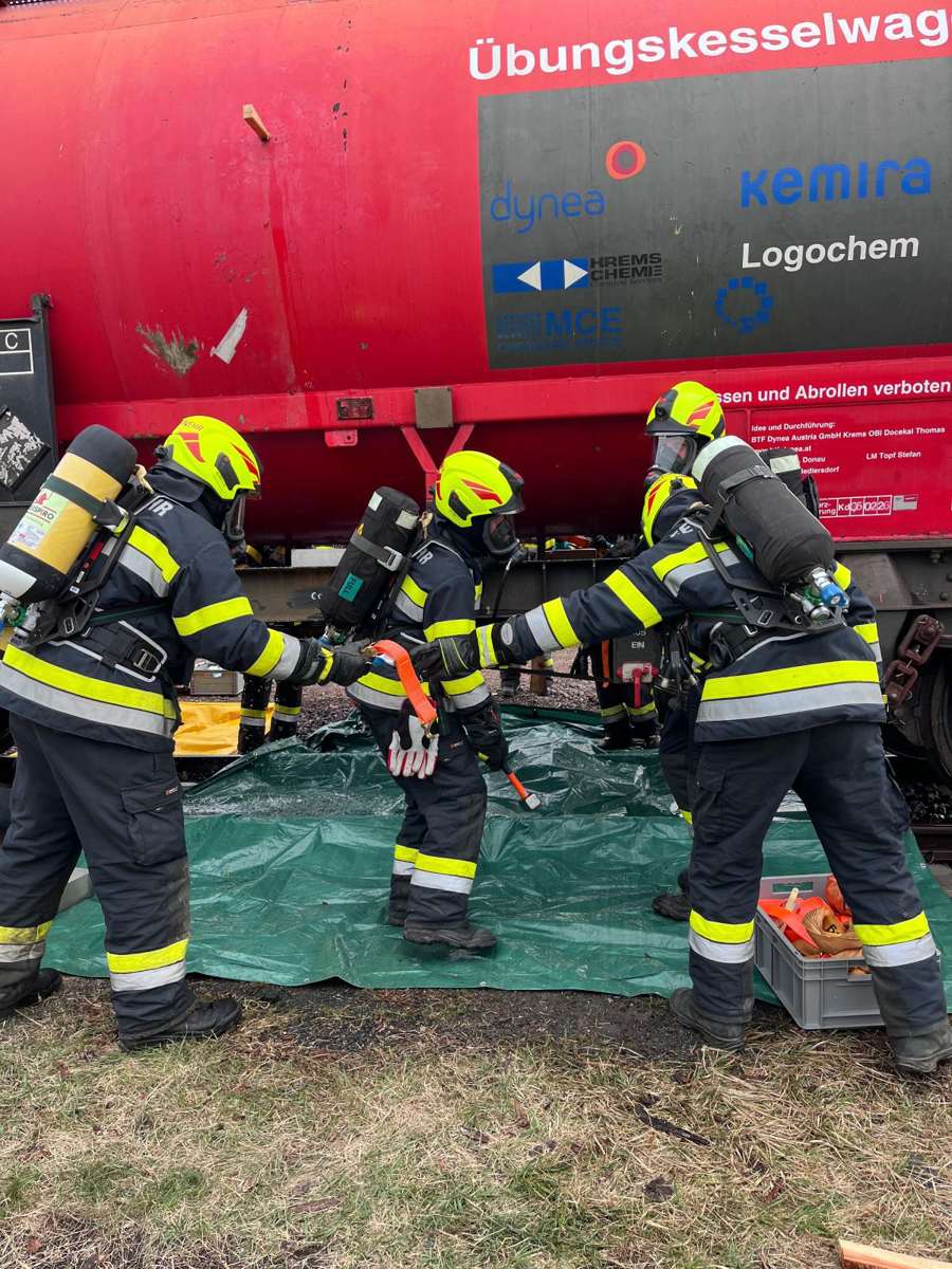 Am Freitag, dem 10. April 2026, hatten wir die Möglichkeit, am Bahnhof Bleiburg eine Übung unter Atemschutz an einem speziellen Kesselwagen durchzuführen. Dieser Kesselwagen war für einen Tag in unserem Bezirk stationiert und ist so konstruiert, dass verschiedene Undichtheiten realistisch simuliert werden können.