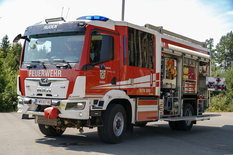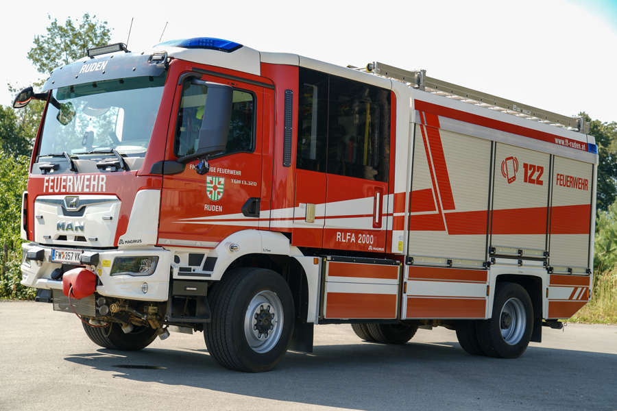 | Magirus RKL auf dem Fahrerhausdach, blaue LEDs mit Designverkleidung | ||
