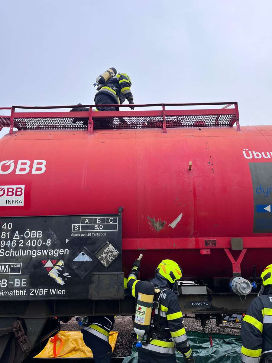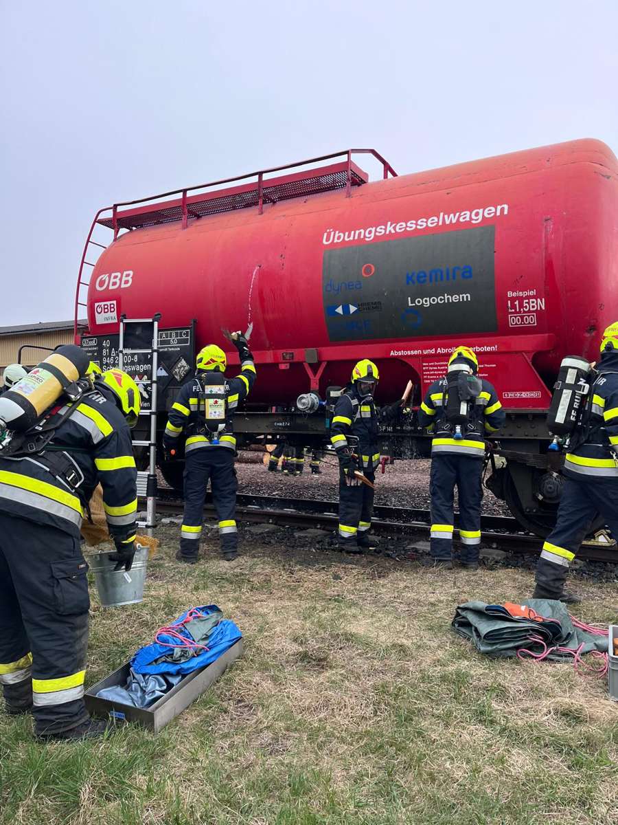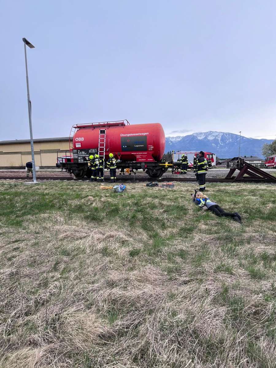 Am Freitag, dem 10. April 2026, hatten wir die Möglichkeit, am Bahnhof Bleiburg eine Übung unter Atemschutz an einem speziellen Kesselwagen durchzuführen. Dieser Kesselwagen war für einen Tag in unserem Bezirk stationiert und ist so konstruiert, dass verschiedene Undichtheiten realistisch simuliert werden können.