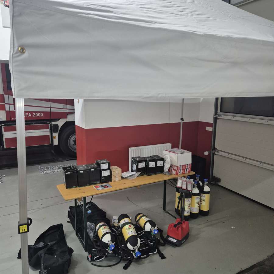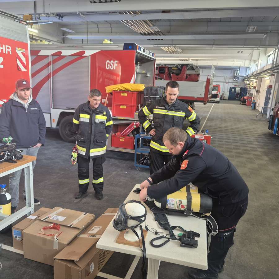 Neben der offiziellen Übergabe wurden die Einsatzkräfte in Wartung, Prüfung und den sicheren Umgang mit den neuen Geräten eingeschult. Anwesend waren die Kommandanten oder deren Stellvertreter sowie die Atemschutzbeauftragten der Feuerwehren.