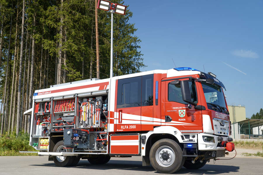 | Magirus RKL auf dem Fahrerhausdach, blaue LEDs mit Designverkleidung | ||